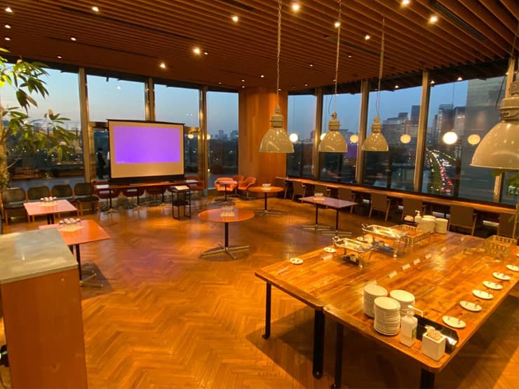 開放的な空間を貸し切り、企業懇親会の実施も可能です。シェフこだわりのお料理と心地よい空間に加え、マイクや音響機器などの各種機材も揃っているので多彩な用途に対応します。
